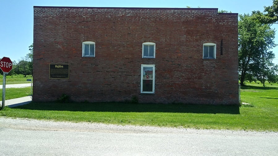 Built around 1916, this single-story brick building on the corner of Fourth and Main Streets is the sole surviving commercial building on what was once the Beaconsfield town square. The building design features a large window front façade and is similar to many rural Iowa retail stores constructed in the late 1800s and early 1900s. Throughout its history it has housed a variety of businesses including a telephone exchange and a lunch counter. From 1930 to 1933 Charles Hyde and David Vredenburg operated the Beaconsfield Supply Store here, a precursor to the grocery chain that in 1952 would become Hy-Vee.