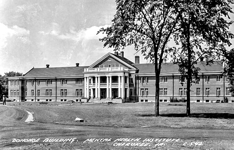 The Wade and Donohoe “cottages” are ancillary buildings to the “Cherokee State Hospital,” now known as the Cherokee Mental Health Institute (CMHI). Completed in 1902, the CMHI was the last of four regional mental health facilities in Iowa and was constructed on the “Kirkbride Plan” – a 19th century plan for psychiatric hospitals. The Cherokee facility reached a peak population of 1,729 patients in December 1945. Both buildings are located along a continuous loop on the nearly 200 acre site at the west edge of Cherokee.
