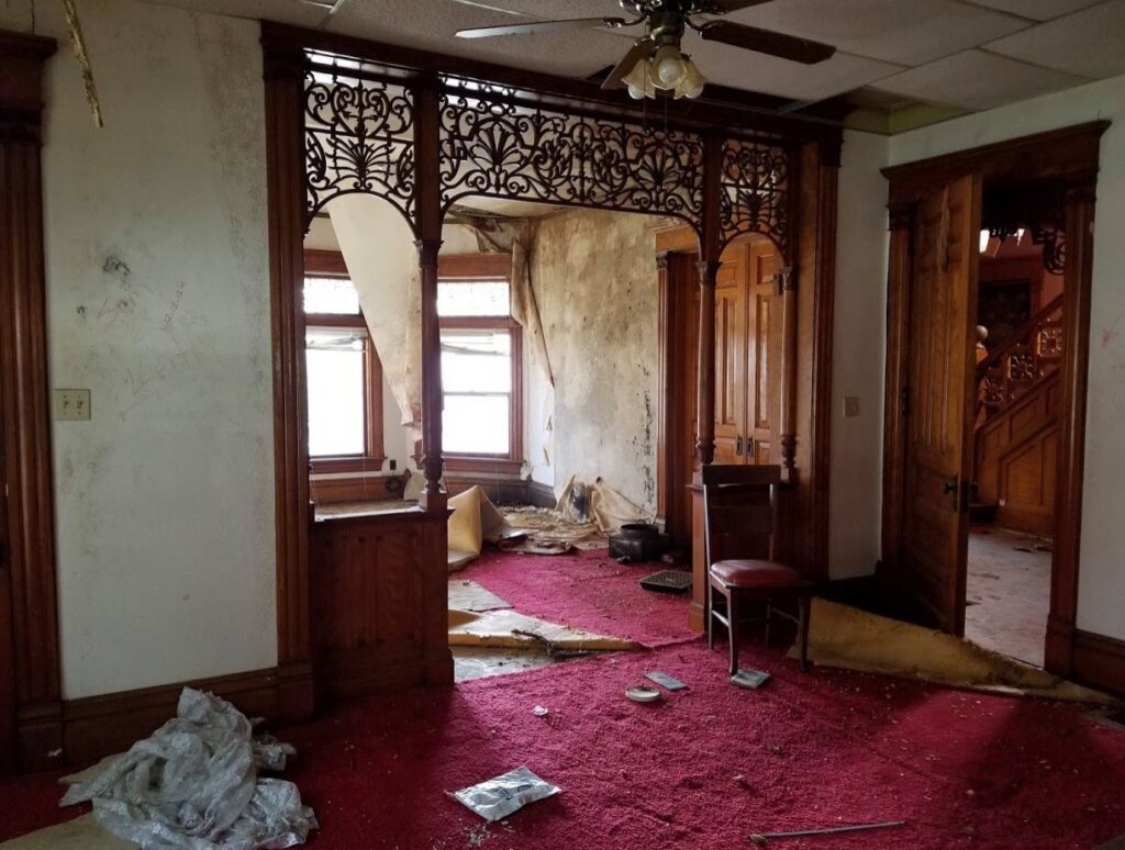 The Shaw Mansion has been vacant well over a decade after a former owner was unable to keep up with the maintenance and upkeep needs of the house. Consequently, the property has deteriorated significantly. The structure is in much need of a new roof as well as repairs to porches, siding, windows and a drain pipe sinkhole. In addition, the leaking roof has led to significant damage to the interior including the floor on the second and third stories.