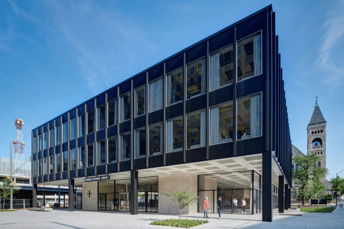 Preservation at its Best 2018, Sustainability: Catholic Pastoral Center (Des Moines) After a nationwide search, Home Federal Savings & Loan leaders selected the modernist master architect, Mies van der Rohe to design the their bank. Mies’ 1962 design for the Home Federal building sets it back from the busy street corner to create a granite-paved open plaza. The tinted glass curtain wall suspends on black steel columns over a […]
