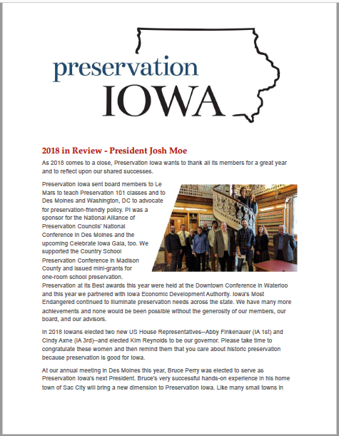 Quarterly Preservation Iowa Newsletter – Winter 2018